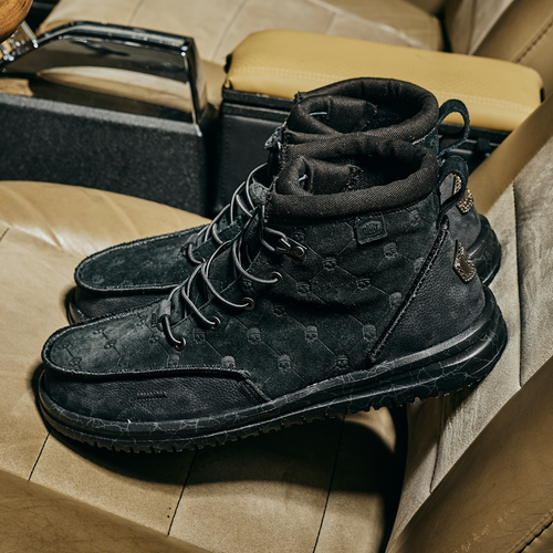 Jelly Roll X HEYDUDE are back and this time we’re bringin’ the heat. Our first-ever Jelly Roll boot is here, but not for long. Black-suede, Jelly Roll skull-printed upper, same easy on/off of our Bradley and elastic laces. Featuring our brand new “chain-breaking” logo because as we know, Jelly Roll just cannot be held back.